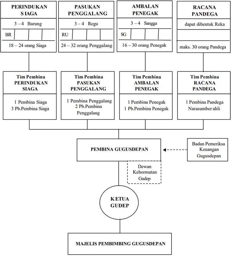 Berdasarkan Keputusan Kwartir Nasional Gerakan Pramuka Nomor 231 Tahun 2007 tentang Petunjuk Penyelenggaraan Gugus Depan Gerakan Pramuka: